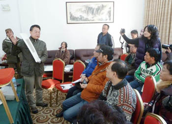 來自臺灣的呂良遠近日在廈門鼓浪嶼一小型沙龍上,向大陸準備進入藝術品市場的潛在藏家講授攝影收藏的基本知識。曾璜攝(中國特稿社) |