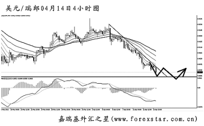 ▲美元兌瑞郎短線下跌勢頭迅猛,已經接近了上月中旬創出的低點0.8920一線,并且小幅刺破,能否有效跌破此位成為后市匯價繼續下跌的關鍵。圖中下降趨勢線對匯價的壓制作用完好,但此線距離均線系統過遠,若美元兌瑞郎升破此線,將很有可能一并突破0.8990的道氏點阻力。