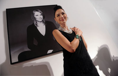 瑞士著名珠寶設計師SuzanneSyz首次亞洲個人作品展覽近日在香港中環BenBrownFineArts畫廊舉行,共有逾30件名貴珠寶首飾作品展出。圖為模特Ana.R在珠寶展上展示首飾。