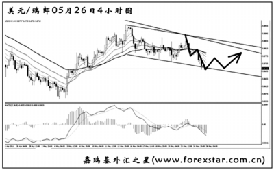 ▲美元兌瑞郎短線下行回調,運行在一個震蕩通道之中,從大級別圖形上看,整體為前方低位反彈的次要節奏調整。日線圖均線系統壓制排列,目前匯價距離道氏高點阻力位置遙遠,想要結束中線的跌勢困難重重。關注圖中通道下沿的支撐力度,只要不有效跌破,后市美元兌瑞郎仍將以反彈運行為主。