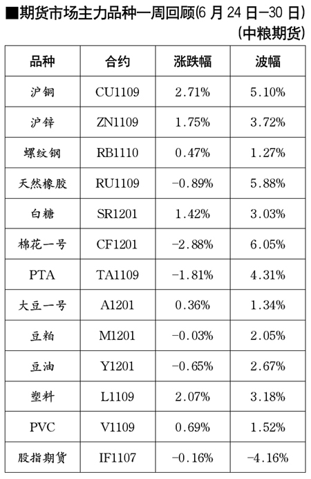期貨市場主力品種一周回顧[6月24日-30日]