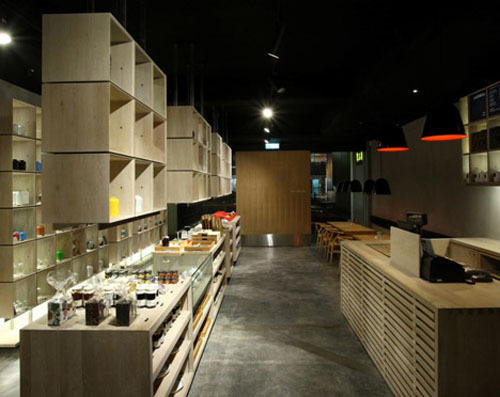 J?rgensen之手。茶館分兩層,一層擺放及產(chǎn)品展示架及木制家具,二層則是用餐室。木材與混凝土結(jié)合起來的室內(nèi)別具一番清新、自然的美感,與茶的細(xì)致、微妙相互融合,自然會勾起顧你與茶呼應(yīng)的無限情懷。