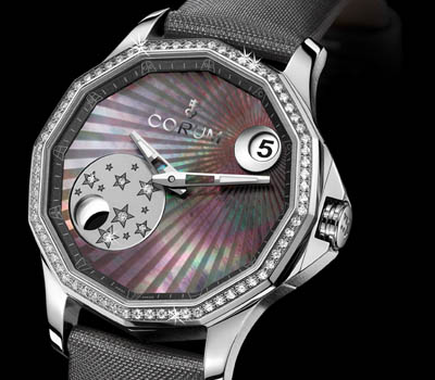 今年為里程號款式系列推出的海軍上將杯里程號38月相腕表可謂是光彩奪目的高級鐘表的典范。腕表設CO384自動上弦機芯,動力儲備約42小時,備時丶分丶跳字式日歷及跳字式月相顯示功能。月相顯示以珍珠貝母制,顯示盤則以緞面磨砂金屬制并飾有星形圖案,當中六顆星形圖案內(nèi)更鑲有鉆石。