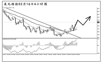 技術面上,如圖所示,美元指數短線強勁上揚,已經將4小時圖的道氏高點阻力79.50順利升破,上行空間被進一步打開。從日線圖上看,美元指數重新漲回到均線系統上方,短線尚無明顯的動能減弱信號發出,預計后市仍將以上行為主,此波上漲的終極目標是挑戰前方高點81.75。