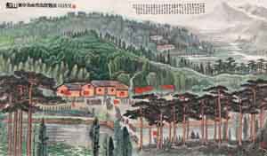 自上世紀(jì)50年代開(kāi)始,隨著中國(guó)政治、社會(huì)各方面涌現(xiàn)出一種對(duì)革命圣地的崇拜熱情,與革命歷史相關(guān)的韶山、井岡山、延安等地,地位不斷提升。1960年傅抱石的《毛澤東同志故居》《韶山八景》參加在北京舉辦的全國(guó)美術(shù)展,最早將對(duì)革命圣地的描繪脫離寫(xiě)生層面,進(jìn)入主題性創(chuàng)作,“革命圣地山水題材”就此開(kāi)始形成,這種新的山水畫(huà)類(lèi)型在上個(gè)世紀(jì)60年代中期得到空前發(fā)展,成為與“毛澤東詩(shī)意山水”并行的兩大國(guó)畫(huà)題材。在此類(lèi)型作品中,“韶山”是畫(huà)家描繪最多的,幾乎當(dāng)時(shí)所有山水畫(huà)家都曾涉足。