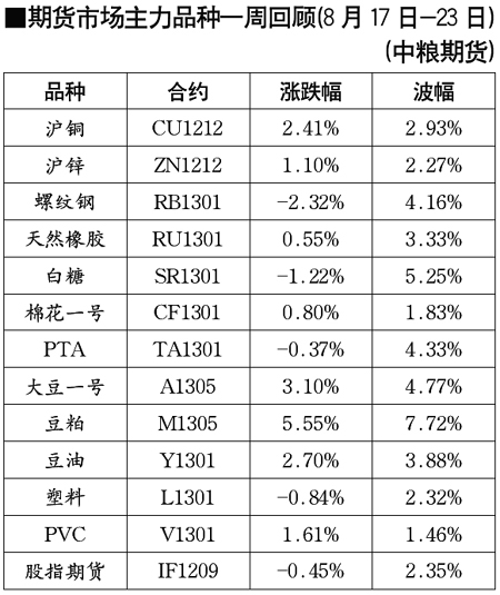 期貨市場主力品種一周回顧[8月17日-23日]