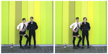 你試過(guò)女扮男裝/男扮女裝嗎?加拿大女?dāng)z影師哈娜·佩舒特計(jì)劃明年1月出版影集《驟變》,內(nèi)容是一對(duì)對(duì)“換裝”男女。同樣的背景、同樣的姿勢(shì),僅僅是服裝服飾全部對(duì)調(diào),就產(chǎn)生了奇妙的效果,令人忍俊不禁。