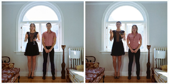 自2010年開始,她陸續(xù)為超過(guò)200對(duì)男女模特拍攝換裝照。他們先以正常形象拍照,然后從頭到腳互換服裝配飾,再以相同姿態(tài),在同一背景下拍攝換裝照。
