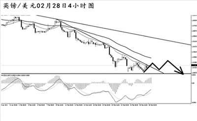 歐元兌美元將日線(xiàn)圖上升趨勢(shì)線(xiàn)跌破,下行勢(shì)頭保持完好,MACD顯示空頭動(dòng)能充盈。最近一周時(shí)間,歐元有3天收出實(shí)體大陰線(xiàn),下跌力度強(qiáng)勁。4小時(shí)圖下降趨勢(shì)線(xiàn)的壓制位在1.3270一線(xiàn),預(yù)計(jì)匯價(jià)將逐步向此位置發(fā)起反彈。能否突破此位置成為后市歐元繼續(xù)上行的關(guān)鍵。