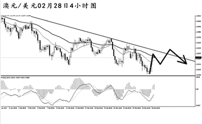 澳元兌美元跌勢(shì)延續(xù),在創(chuàng)出新低之后匯價(jià)強(qiáng)力反彈,但從4小時(shí)圖上看,下降趨勢(shì)線(xiàn)的壓制作用強(qiáng)勁,阻力在1.0300一線(xiàn)。最近澳元震蕩走勢(shì)仍然明顯,強(qiáng)動(dòng)能交替節(jié)奏頻繁,對(duì)于操作有很大的難度。上方道氏高點(diǎn)阻力在1.0340,預(yù)計(jì)澳元將逐步向此位置發(fā)起挑戰(zhàn),但直接上破的概率不大。