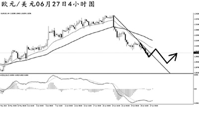 英鎊兌美元發(fā)生了一定力度的上調(diào)走勢,但匯價(jià)始終受制于4小時(shí)圖均線系統(tǒng)的壓制作用。短線匯價(jià)再度創(chuàng)出新低,下跌趨勢得以延續(xù)。目前英鎊的主趨勢已經(jīng)轉(zhuǎn)為向下,雖然空頭力度有明顯的減弱跡象,但在重新升破1.5475之前,需繼續(xù)對英鎊抱以看空思路。短線首先關(guān)注下降趨勢線的阻力強(qiáng)度。