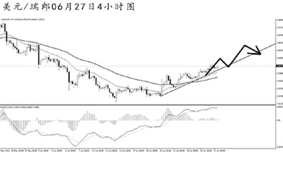 美元兌瑞郎一路上沖,雖然上漲斜率略顯平緩,但趨勢保持良好。4小時(shí)圖上看,目前匯價(jià)正在考驗(yàn)道氏高點(diǎn)0.9415的阻力,升破方可打開進(jìn)一步的上行空間。小時(shí)圖均線系統(tǒng)依托排列,同時(shí)匯價(jià)受到上升趨勢線的支撐,后市仍有較為強(qiáng)勁的走高動(dòng)力。在趨勢線被有效跌破之前,可繼續(xù)抱以看漲思路。