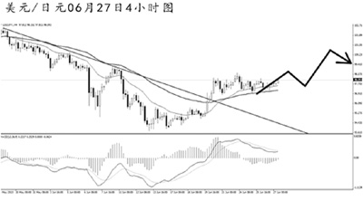 美元兌日元升破4小時(shí)圖的下降趨勢線之后未能加速上行,短線匯價(jià)持續(xù)盤整。大級別圖形上看,美元兌日元連續(xù)兩周收出大陰線,但上周的大陽線剛好收復(fù)此前近一半的跌幅,只要后市匯價(jià)不再發(fā)生強(qiáng)力的暴跌,仍有機(jī)會回歸到中長線的漲勢之中。短線謹(jǐn)慎看漲,等待多頭動(dòng)能暴發(fā)后的入場機(jī)會。