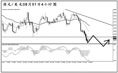 美元兌日元此前經(jīng)過了半個多月的盤整走勢之后強力走低,并且跌破了98.20的支撐。4小時圖上看,匯價有形成三波調(diào)整的可能,若成立,匯價有望從97.60一線逐步發(fā)起反彈。目前美元兌日元低位震蕩,下跌勢頭已明顯放緩。小時圖多頭力度重新占據(jù)主導(dǎo),預(yù)計匯價有發(fā)起上攻的動力,可按照謹慎看反彈的思路對待。