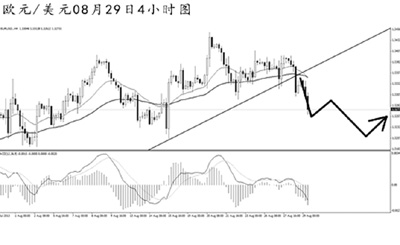 ▲英鎊兌美元此前的上漲并未能升破日線圖高點阻力1.5750,短線匯價的下跌力度強勁。4小時圖上看,英鎊下行接近上升趨勢線的支撐,但并沒有跌破,匯價隨即暴發出較為強勁的多頭動能。只要英鎊不走出直線沖高的節奏,則短線仍有下調挑戰趨勢線的動力,但在跌破此線之前,不建議做空。