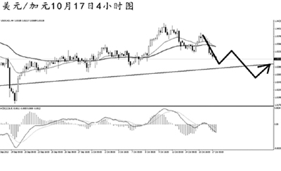 美元兌加元此前的強力上沖走勢并未能延續,匯價隨即展開回落,目前再度向大級別上升趨勢線的支撐一帶發起挑戰。4小時圖的主趨勢已轉為向下。若順利跌破趨勢線,匯價將挑戰1.0180的低點支撐,但預計本輪下跌直接突破此位置的概率不高。