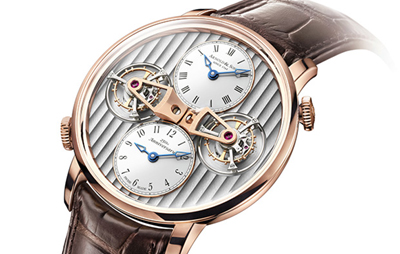 反映源遠的品牌聲譽和具遠景的目光。獨特而令人印象深刻的雙陀飛輪擒縱兩地時間腕表是集機械和優雅美學的珍品。
