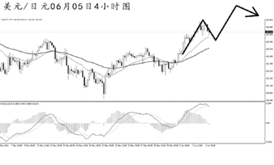 美元兌瑞郎持續走高,但多頭力度明顯不足。4小時圖MACD的頂背離信號明顯,上升趨勢線被小幅跌破。預計匯價有一定的下跌壓力,有效跌破0.8930之后存在入場做空的機會。