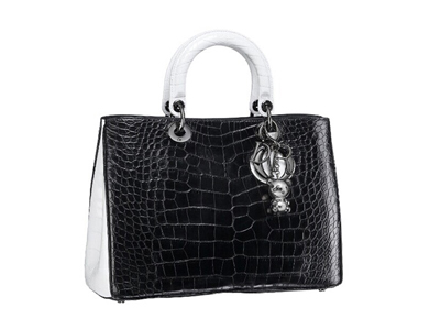 Dior手袋適合日間和晚間攜帶,是歷久不衰的迪奧經典手袋。本款手袋以珍貴鱷魚皮制成,黑白配色及熊貓掛飾與成都兮兮應。