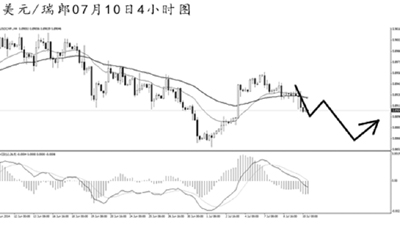澳元兌美元沖高后強力下挫。4小時圖上看,澳元下跌之后陷入震蕩,若想展開進一步的下行,必須將0.9320的低點支撐跌破。短線匯價的沖高幅度有限,后市小幅調(diào)整之后仍將以繼續(xù)下跌為主。