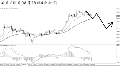 美元兌日元4小時(shí)圖均線系統(tǒng)依托排列,但匯價(jià)已經(jīng)小幅跌破了上升趨勢(shì)線的支撐,后市面臨一定的下調(diào)壓力。短線可謹(jǐn)慎看空,若順利跌破103.50,匯價(jià)有望向102.30附近逐步挺進(jìn)。