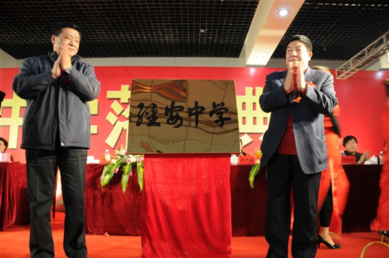 唐山豐南區委副書記高樹春、畢氏集團董事長畢經安為經安中學揭牌