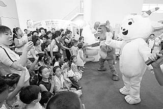 在中國濟南國際兒童聯歡節暨兒童用品博覽會上,“喜羊羊與灰太狼”與兒童們零距離接觸。俄國慶