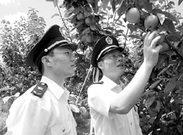 寧波檢驗檢疫局工作人員在寧波市灣底村對出口農(nóng)產(chǎn)品基地進(jìn)行源頭管理 |