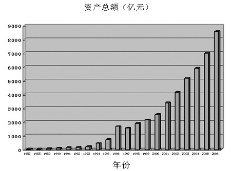 2006年底,全國財務公司資產規模為8581億元,較1987年的17億元增長了504倍。(見圖一)