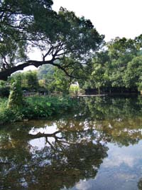 婺源的田園風光,可概括地形容為“水繞村莊”。有水的地方就有村子,有村子的地方就可以看見溪流。鄉村小道兩邊飛檐翹角,灰瓦白墻的徽州民居,錯落有致地鑲嵌在修竹掩映的林間。