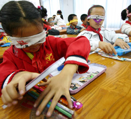 為迎接10月15日“世界盲人日”,重慶市永川區上游小學四年級學生開展“體驗盲人生活”團隊活動,包括盲聽、盲走等。學生們在活動中體會到盲人生活的艱辛,并認識愛護眼睛的重要性。新華社發(陳仕川