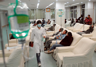 11月10日,部分疑似食物中毒的員工在嘉興市武警醫院內輸液。