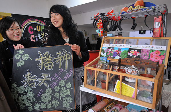 2月25日,浙江大學城市學院的兩位在校大學生在學校創業實踐基地的店鋪推銷“創意花卉”。