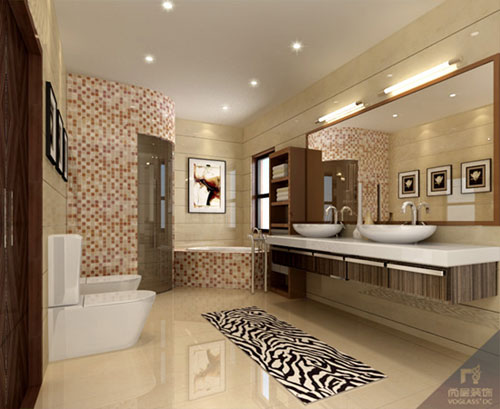 寬大的洗漱間,白色的洗手池于米色的墻搭配令空間拉伸,顯得整潔。 |
