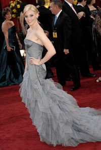 拋開第一印象,挑剔的評(píng)論者們便開始不厭其煩地對(duì)比各禮服間的亮點(diǎn)。較之以往,今年設(shè)計(jì)師們更為注重對(duì)細(xì)節(jié)的打造。 對(duì)珠片等閃亮飾物的大面積運(yùn)用似乎是不少女星此次紅毯的共同偏好。卡梅隆·迪亞茲以一身亮片墜飾的奧斯卡·德拉倫塔禮服出席,星星一般的碎鉆從上至下、由密到疏地灑落在香檳色的裹胸長裙上,大面積的璀璨感讓她也突破了自己這些年來在紅毯上的平淡表現(xiàn),成功博得了媒體一邊倒的贊譽(yù)。無獨(dú)有偶,作為為數(shù)不多選擇普拉達(dá)2009年早秋系列的女星,凱瑞·穆里根的黑色小禮服也全因胸前嵌有類似排列感的黑色水晶而勝出。初次登上奧斯卡紅毯的少女歌手麥莉·賽勒斯也在腰際間運(yùn)用了大量珠片裝飾,上身的剪裁則頗能體現(xiàn)今年內(nèi)衣外穿的潮流。 而立體緞面花朵以及夸張的滾邊也是本次紅毯上頻頻亮相的設(shè)計(jì)細(xì)節(jié)。其中,珍妮佛·洛佩茲就靠阿瑪尼2010春季高級(jí)定制系列中一款不對(duì)稱滾邊禮服成功彌補(bǔ)了自己臀部線條過粗的缺陷。 然而,同樣的理念卻有可能帶來截然相反的效果。薇拉·法米加一身艷玫瑰粉色布滿大荷葉裝飾的瑪切薩禮服就讓人大跌眼鏡,有網(wǎng)友甚至尖銳地點(diǎn)評(píng)“如此的款式即便是在街邊的婚紗店櫥窗里也絕不會(huì)受歡迎”。或許,知道運(yùn)用潮流元素是件值得鼓勵(lì)的事,但如果沒有絕對(duì)的把握和外形優(yōu)勢(shì),選擇簡單經(jīng)典的款式也不失為一種成功。