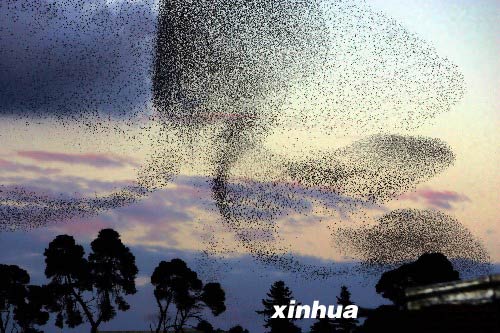 這是2006年1月15日,一群候鳥聚集在阿爾及利亞首都阿爾及爾上空,尋找棲身過夜的場所。每年,數以百萬計的候鳥從歐洲出發,經這里飛向南方。專家指出,近年來出現的鳥類遷徙季節推遲、繁殖期提前和部分鳥類生活區域北擴等異常現象,都與全球氣候變化有關。