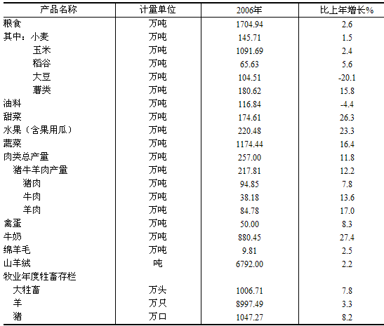 附表2:主要農畜產品產量和牲畜存欄數