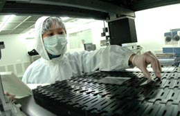 天津生物芯片技術有限公司的技術人員在作芯片點樣準備。