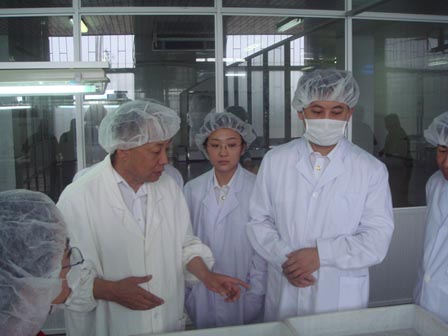 全國質量工作會議后,質檢系統在全國開展了產品質量安全集中整治工作,堅持靠前指揮、重心下移、科學管理、有效監督,幫助企業提高產品質量,確保產品安全。圖為遼寧出入境檢驗檢疫局工作人員在鲅魚圈華東食品有限公司現場指導企業生產者加強質量監管。