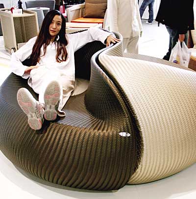 10月9日至11日,“2007北京國際酒店用品展覽會暨2007中國清潔博覽會”在北京中國國際展覽中心舉行。圖為德國生產的賓館用沙發。
