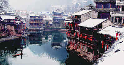 圖為湘西古城鳳凰迎來大雪,吸引眾多中外攝影愛好者及游客紛紛前來創作采風。