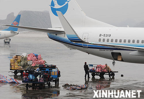 1月27日,貴陽龍洞堡機場工作人員抓緊時間為客機卸貨。