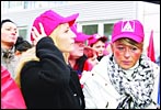 諾基亞員工在示威游行時(shí)哭泣。 |