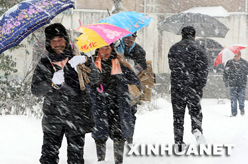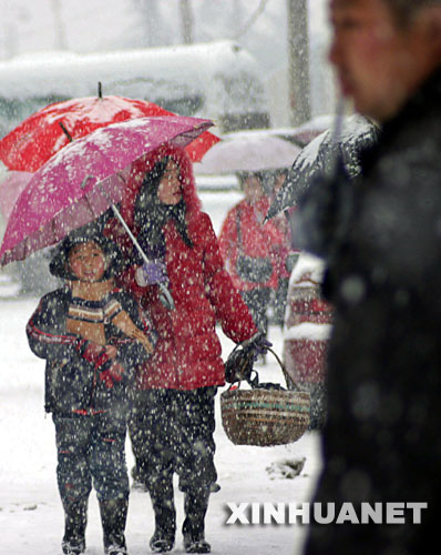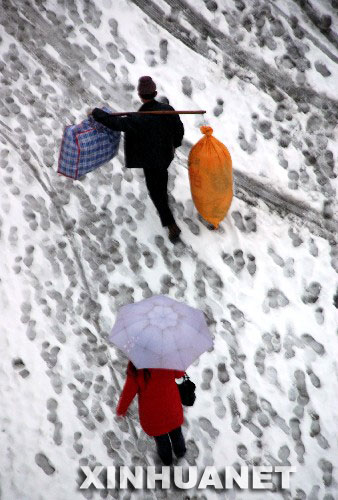 1月26日,幾名合肥市民在大雪中行走。當日,安徽江淮流域再次遭受大雪襲擊,持續十多天的罕見大雪和冰凍天氣仍在繼續。 新華社記者 陶明 攝