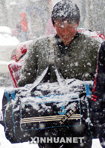 1月26日,乘客冒雪來到巢湖汽車站等車。1月26日,安徽省巢湖市出現暴雪天氣,給人們出行帶來很大不便,道路交通受到影響。巢湖市氣象臺發布了暴雪和道路結冰橙色預警。 新華社發