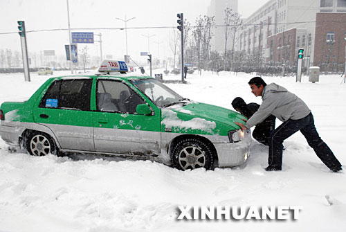 1月26日,一輛出租車陷在雪中。當日,合肥出現罕見暴雪,給市民出行帶來較大影響。合肥市氣象臺發布了道路結冰黃色預警和暴雪橙色預警。 新華社發(馬啟兵 攝)