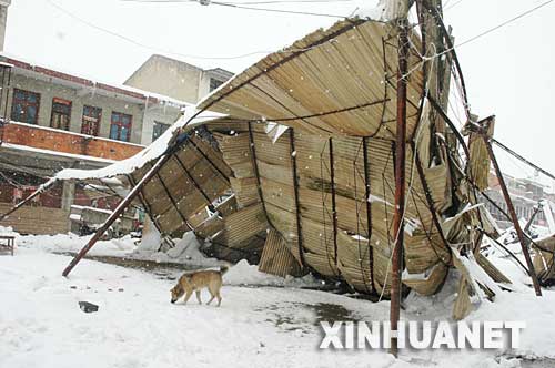 | 1月26日拍攝的巢湖市蘇灣鎮(zhèn)被大雪壓塌的農(nóng)貿(mào)市場(chǎng)。新華社發(fā) |