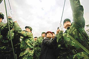 二炮某部工程技術總隊200多名官兵為讓郴州人民除夕夜擁有光明,負責搶通城前嶺110伏線路,時間只有10小時。