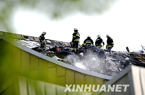 5月20日,消防人員在德國(guó)柏林愛樂音樂廳頂部滅火。