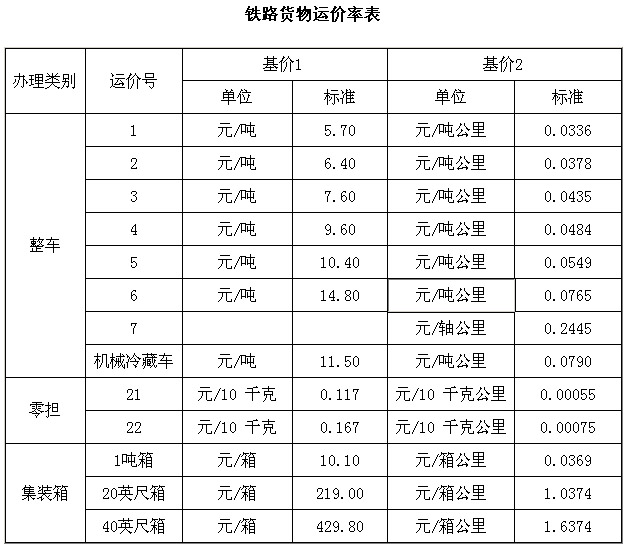 附:《鐵路貨物運(yùn)價(jià)率表》